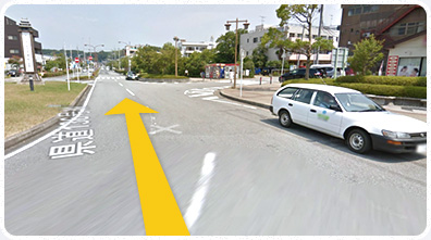 そのまましばらくまっすぐ進み、信号がある大きい交差点を左折してください。